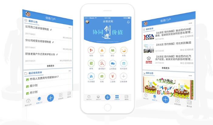 組織及個人的移動入口,新聞,公告,日程事件,時間安排, 離線文檔,第三方業(yè)務集成
